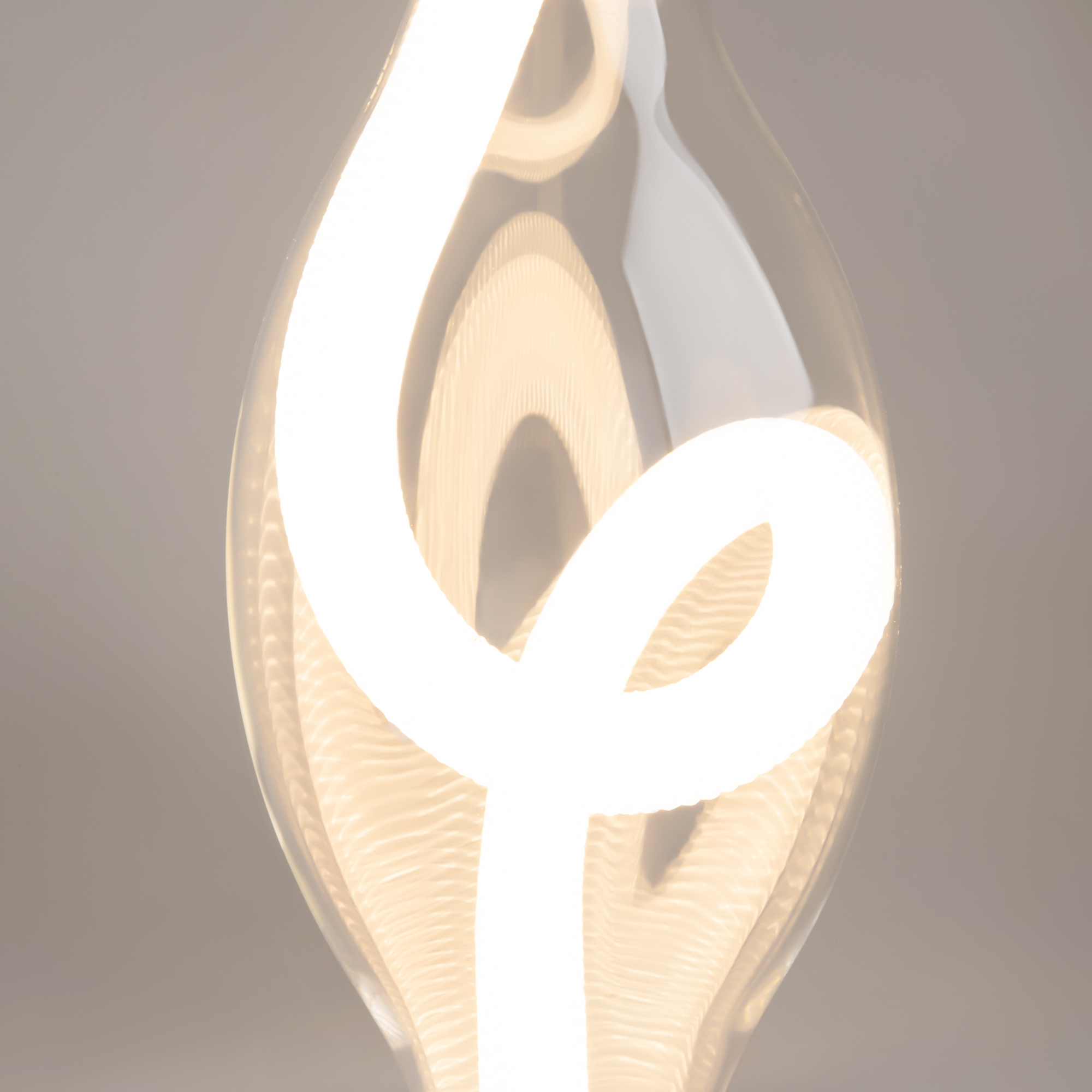 Арматура светильника изготовлена из высококачественного алюминия в цвете латуни, что придает изделию элегантный и благородный вид. Прозрачные плафоны из стекла подчеркивают светодиодный шнур и создают эффект легкости и воздушности конструкции.