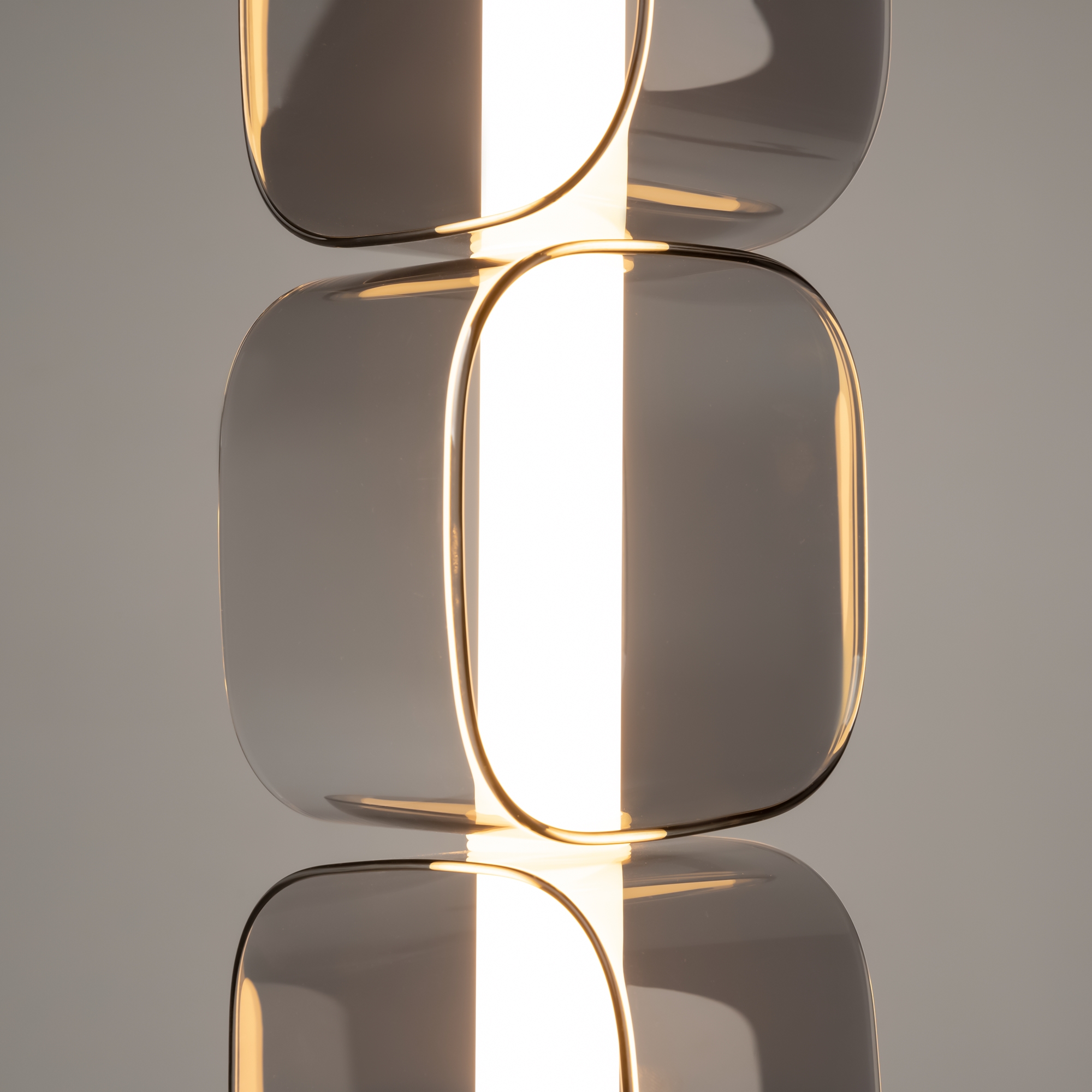 Светильник Ritmo - результат уникальной коллаборации бренда Maytoni с Британской Высшей школой Дизайна. В основе концепции лежит философия ритма Леонардо да Винчи, что отражается в гармоничных пропорциях и плавных линиях модели. Благородное сочетание дымчатого стеклянного плафона и глянцевой хромированной арматуры создаёт ощущение лёгкости и современной элегантности.