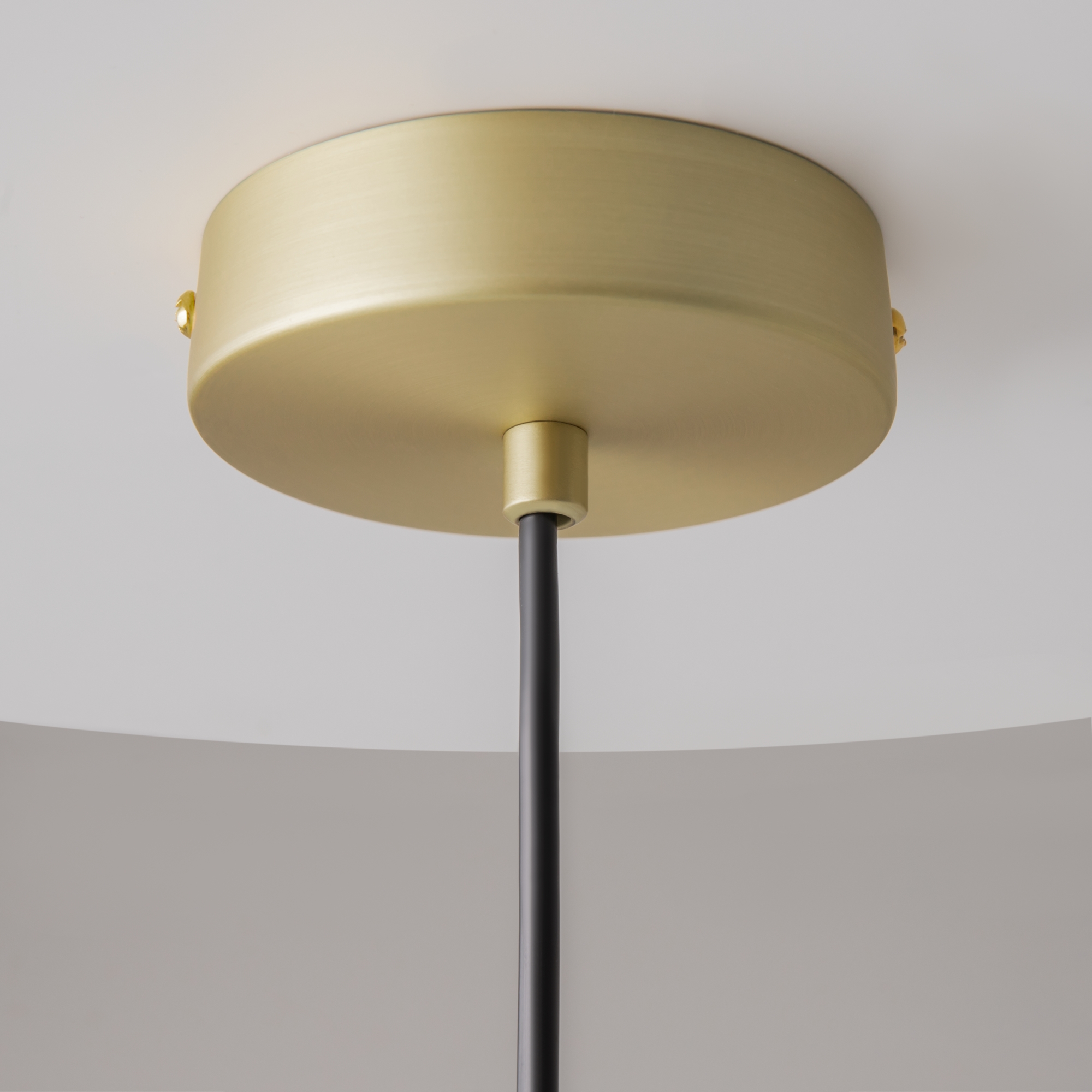 Светильник выполнен в культовом стиле 60-х годов, сочетая классические формы и современные материалы. Алюминиевая арматура с роскошным золотым покрытием создает ощущение премиальности и изящества. Особенность модели – двойной стеклянный плафон, где внутренний слой имеет матовую поверхность, а внешний – прозрачную, что обеспечивает мягкое, приятное глазу освещение и создает интересные световые эффекты.
