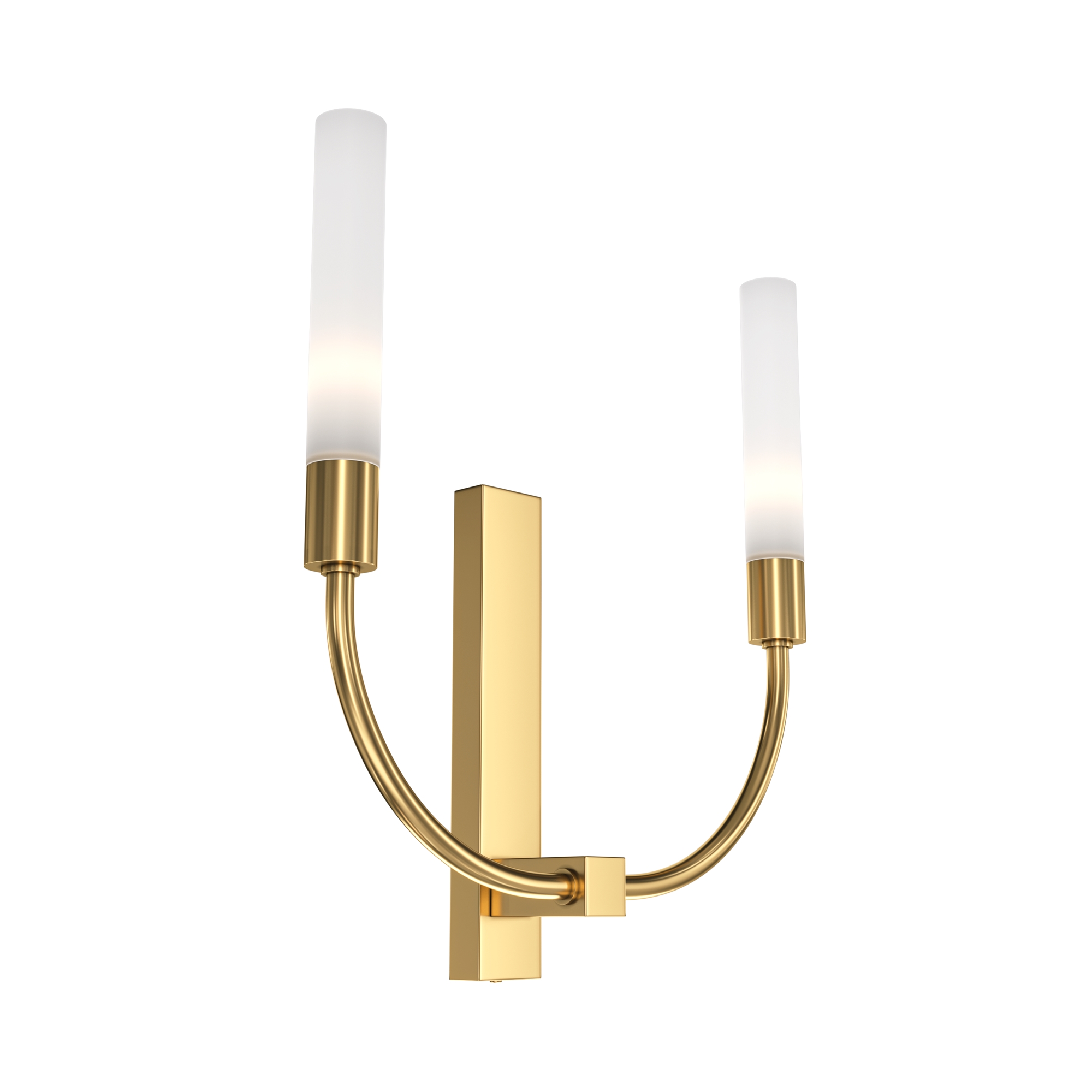 Светильник выполнен в трендовом арочном силуэте, что делает его актуальным элементом современного интерьера. Металлическая арматура цвета латуни создает благородное впечатление и подчеркивает статусность обстановки. Два плафона цилиндрической формы изготовлены из матового белого стекла, которое обеспечивает мягкое, приятное для глаз рассеивание света.