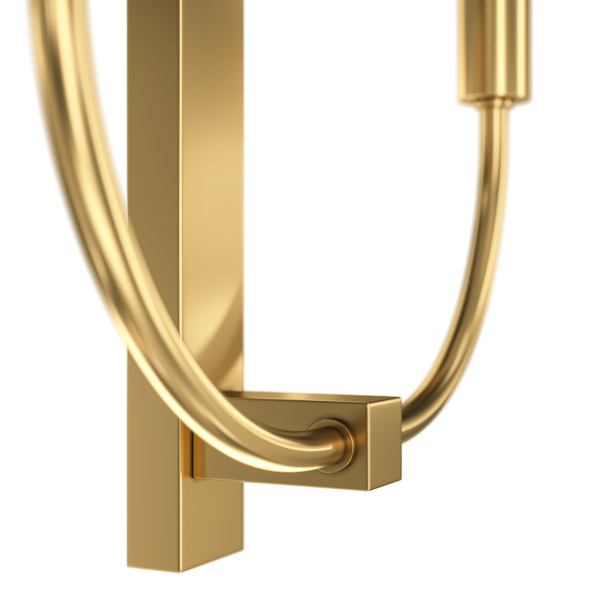 - Стильный дизайн – трендовый арочный силуэт и сочетание латуни с белым стеклом