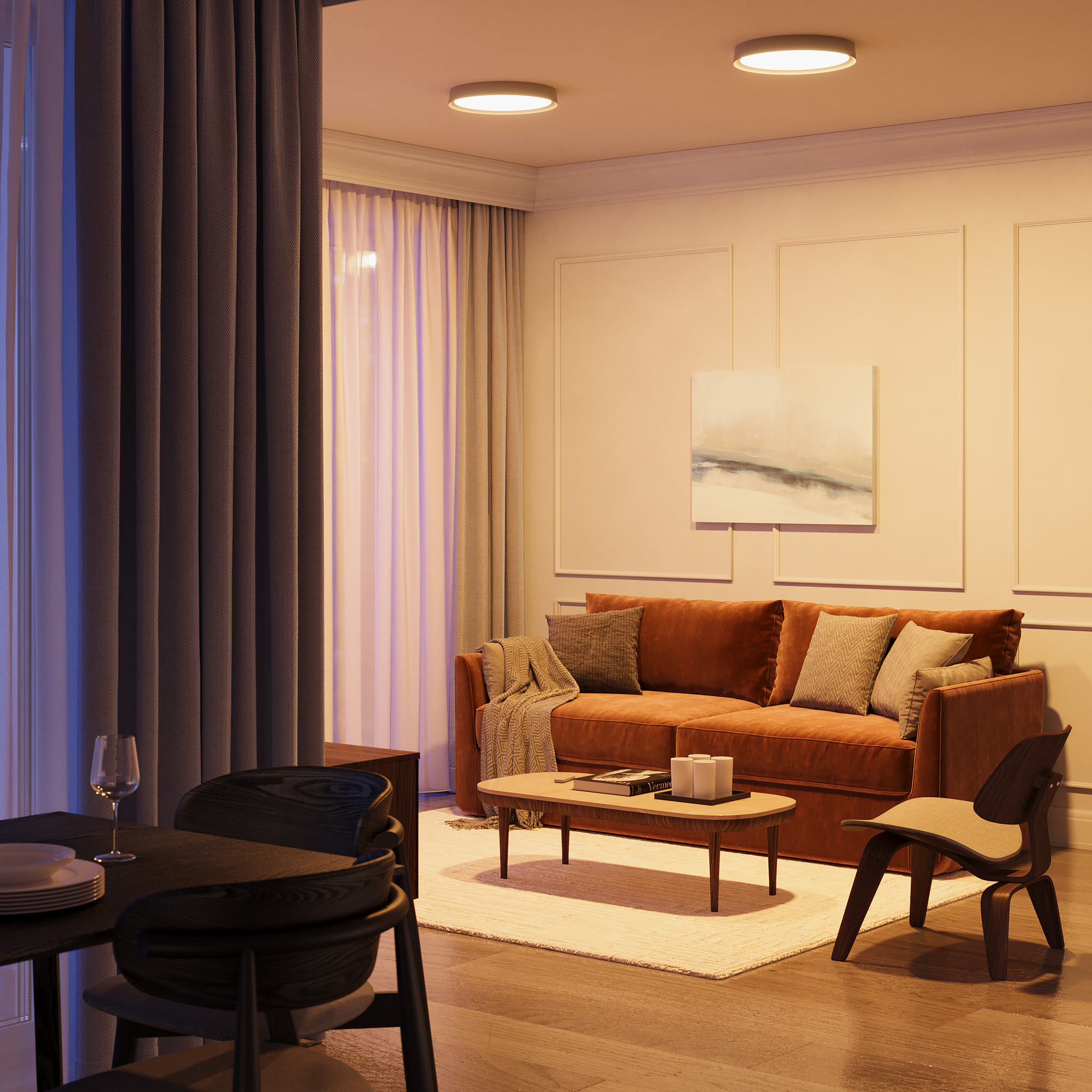 - Форма плафонов круг плоский