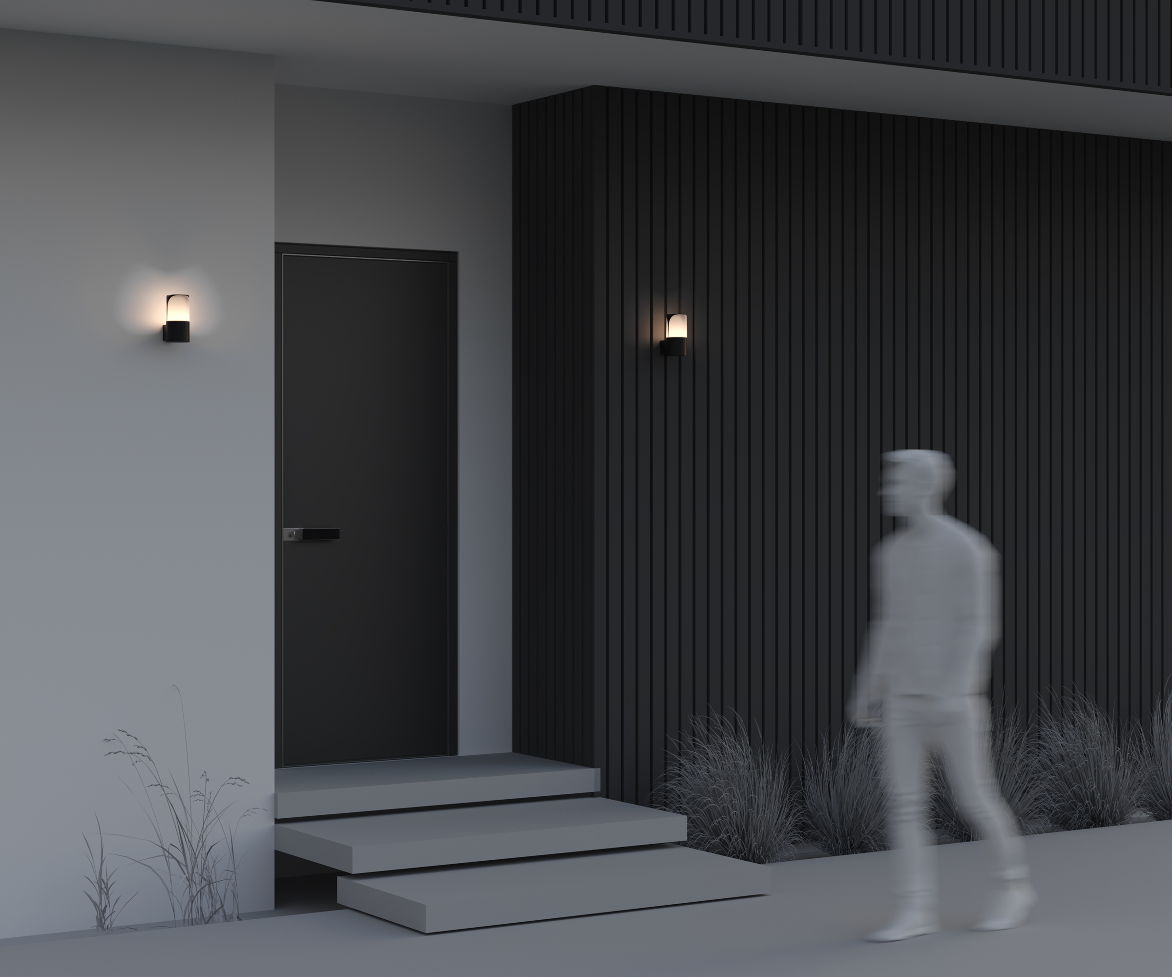 Светильник представлен в современном дизайне, который гармонично впишется в экстерьер любого загородного дома, коттеджа или дачи. Благодаря степени защиты IP44, бра надежно защищено от попадания брызг воды с любого направления и твердых предметов размером более 1 мм, что делает его идеальным для монтажа на открытом воздухе.