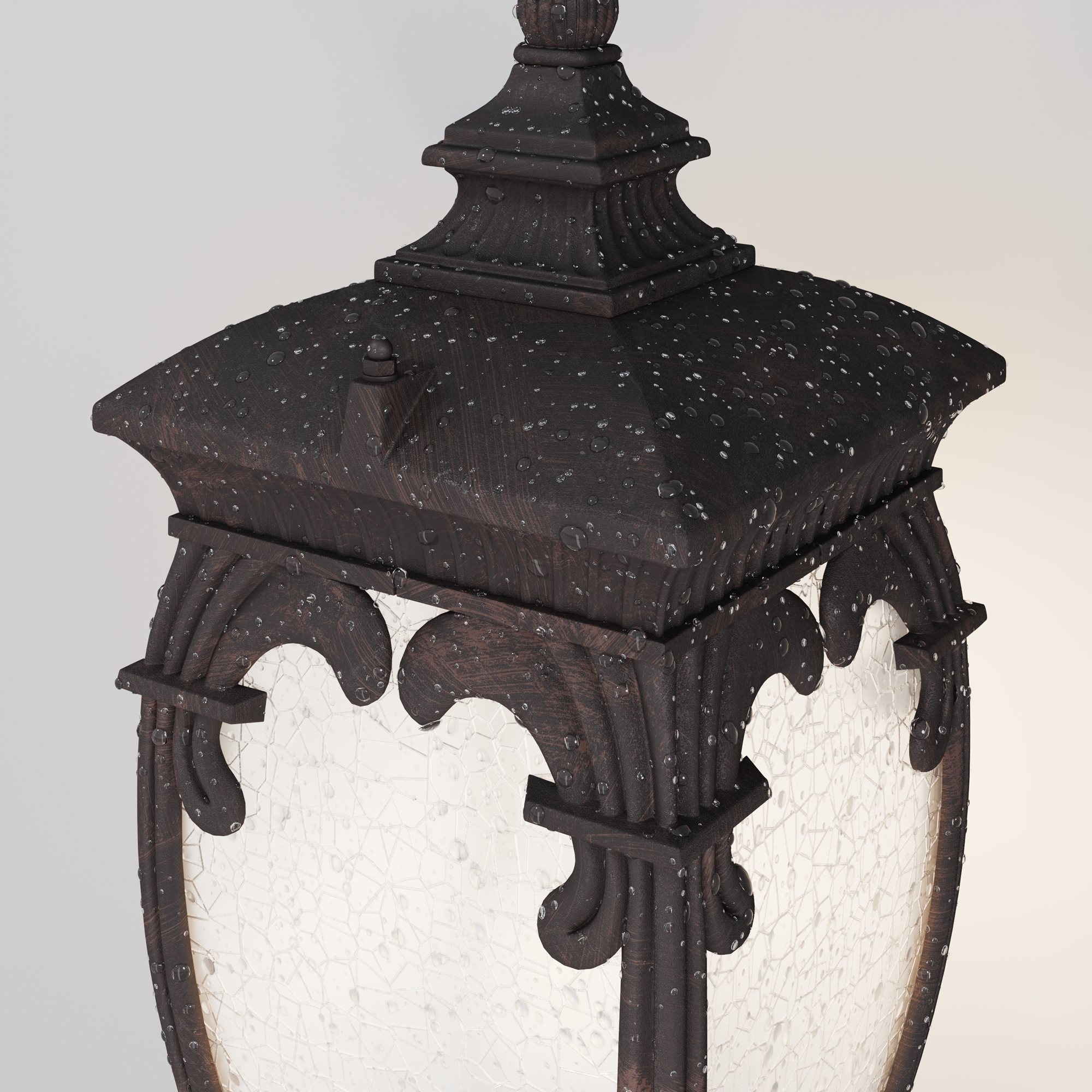 Светильник выполнен в классическом стиле с элементами винтажной эстетики. Корпус изготовлен из высокопрочного алюминия и окрашен в благородный цвет античной бронзы, который придает изделию изысканный и элегантный вид. Особенностью данной модели является декоративный плафон из стекла, обработанный по уникальной технологии PULEGOSO, создающей эффект воздушных пузырьков внутри стекла. Это техническое решение не только повышает эстетическую привлекательность светильника, но и создает особый характер светораспределения.
