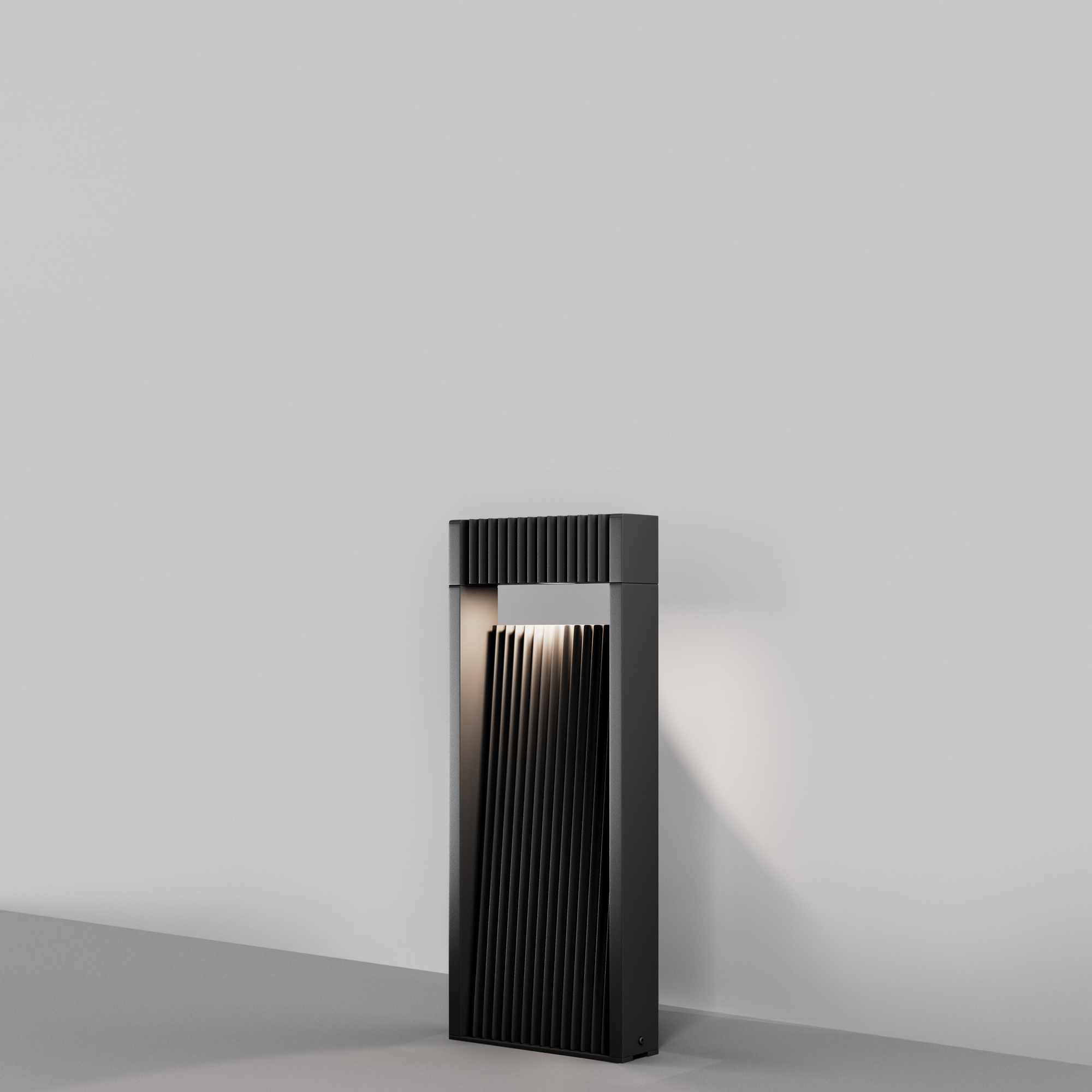 Светильник выполнен в современном минималистичном стиле, который гармонично впишется в любой ландшафтный дизайн. Корпус изготовлен из прочного алюминия графитового цвета, что обеспечивает долговечность и устойчивость к неблагоприятным погодным условиям. Особенностью модели является наличие двух вариантов декоративной отделки корпуса – рифленый металл и имитация дерева, что позволяет подобрать оптимальный вариант под ваш ландшафтный стиль.