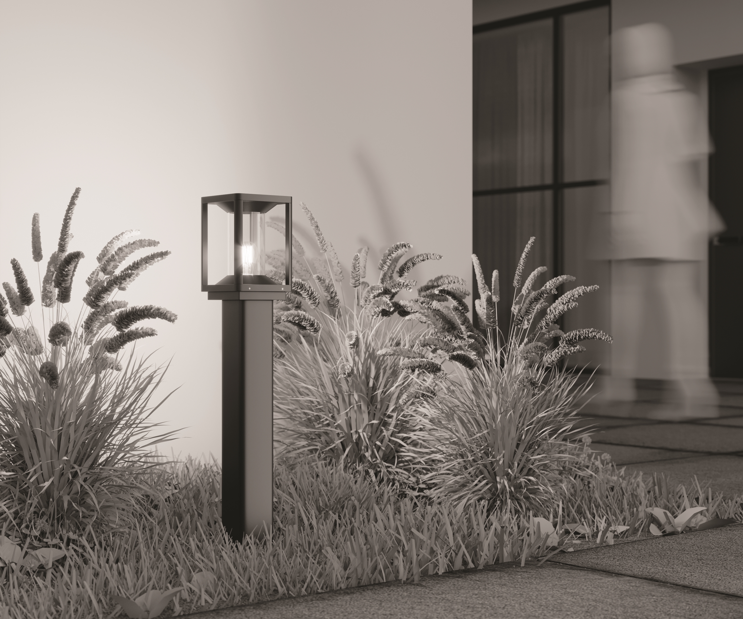 - Современный дизайн - строгие линии и графитовый цвет делают светильник универсальным элементом для любого ландшафтного решения