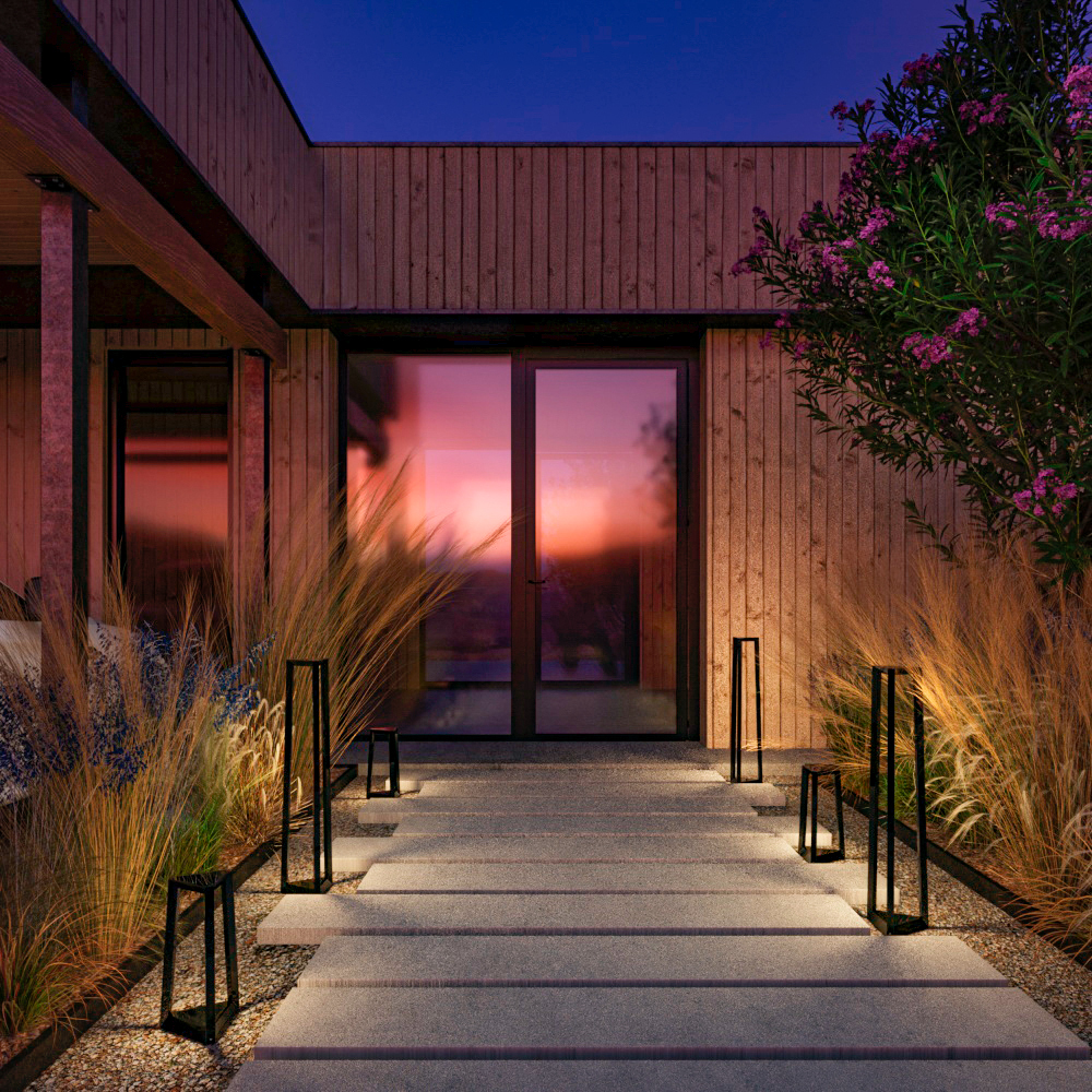 - Теплый свет 3000K создает уютную атмосферу и выгодно подчеркивает растения и ландшафтные элементы