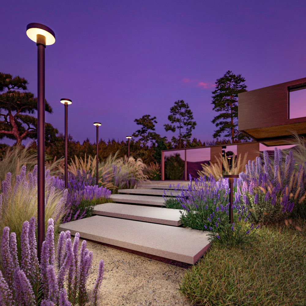 • Современный дизайн в форме гриба гармонично вписывается в различные ландшафтные решения