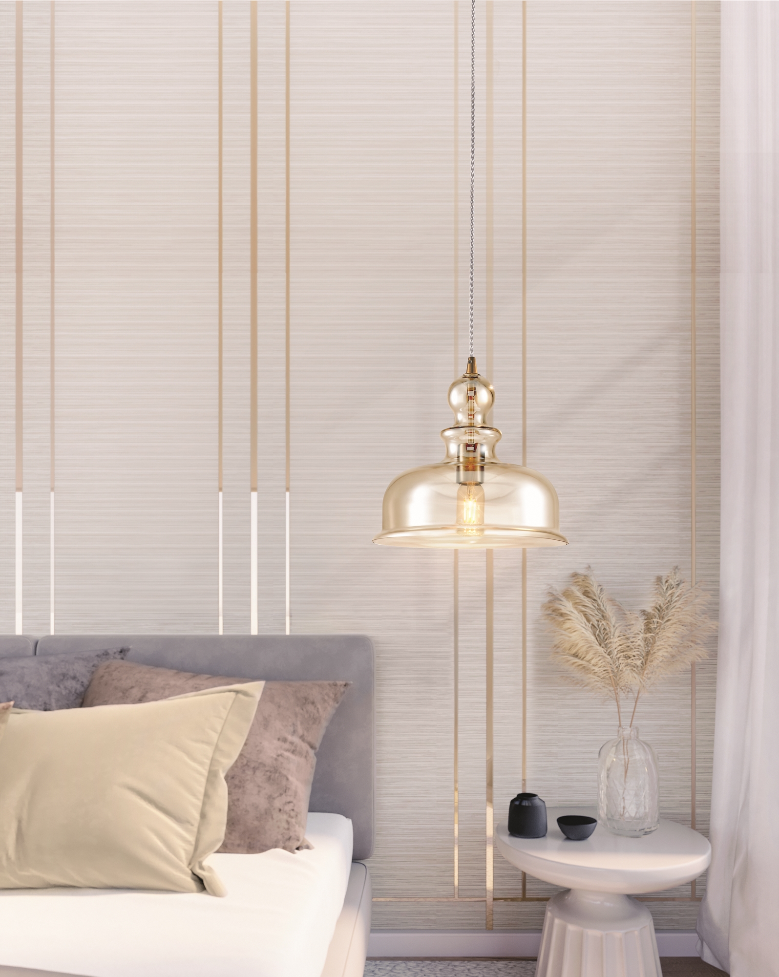 - Цвет плафонов и подвесок янтарный