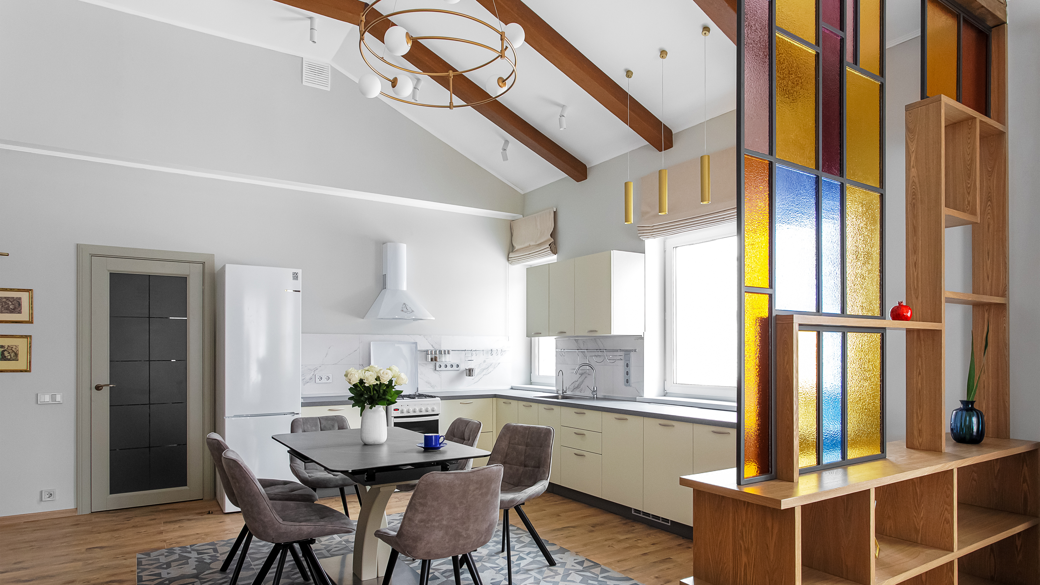 - Зонирования пространства в квартирах-студиях и помещениях открытой планировки