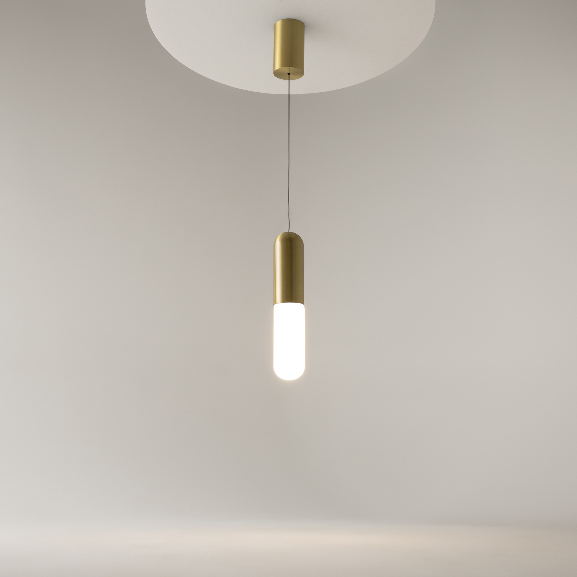 Корпус светильника выполнен из высококачественного алюминия в латунном цветовом решении, что придает модели благородный и изысканный вид. Матовый стеклянный рассеиватель обеспечивает мягкое и равномерное распределение света без резких бликов и теней. Диаметр светильника составляет 60 мм, что делает его компактным и универсальным для установки в различных помещениях.
