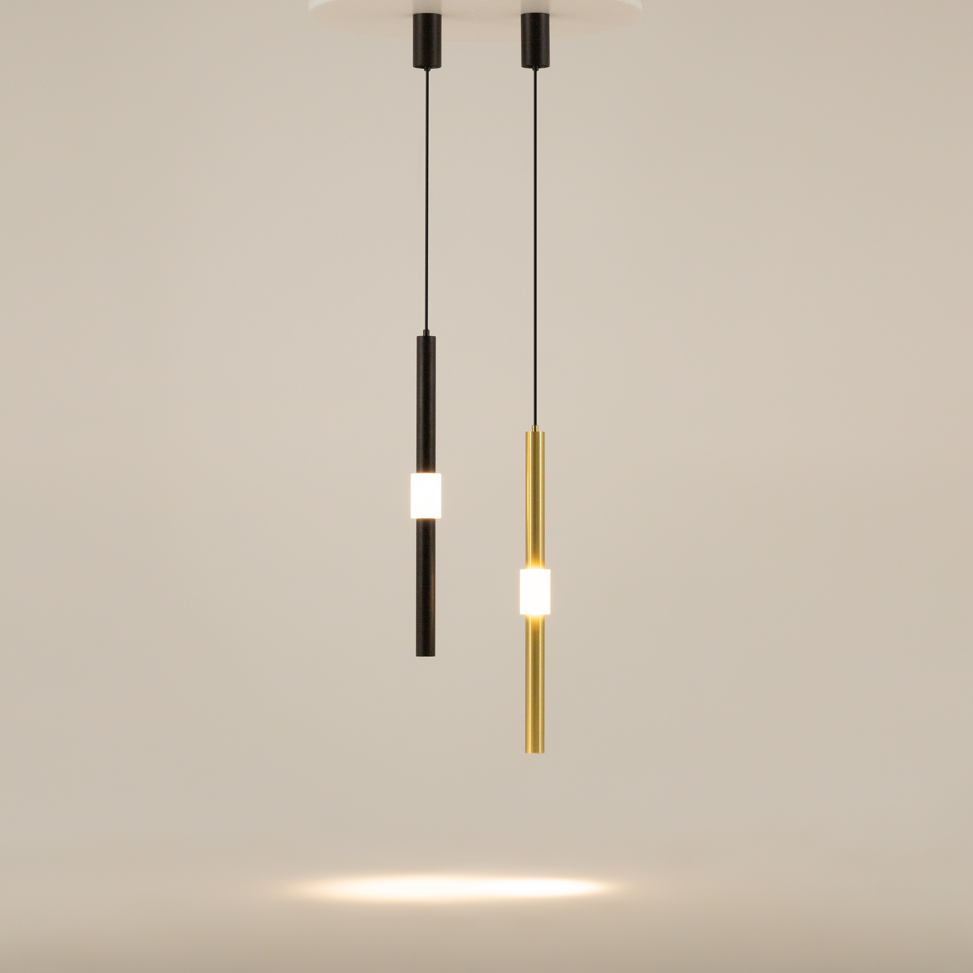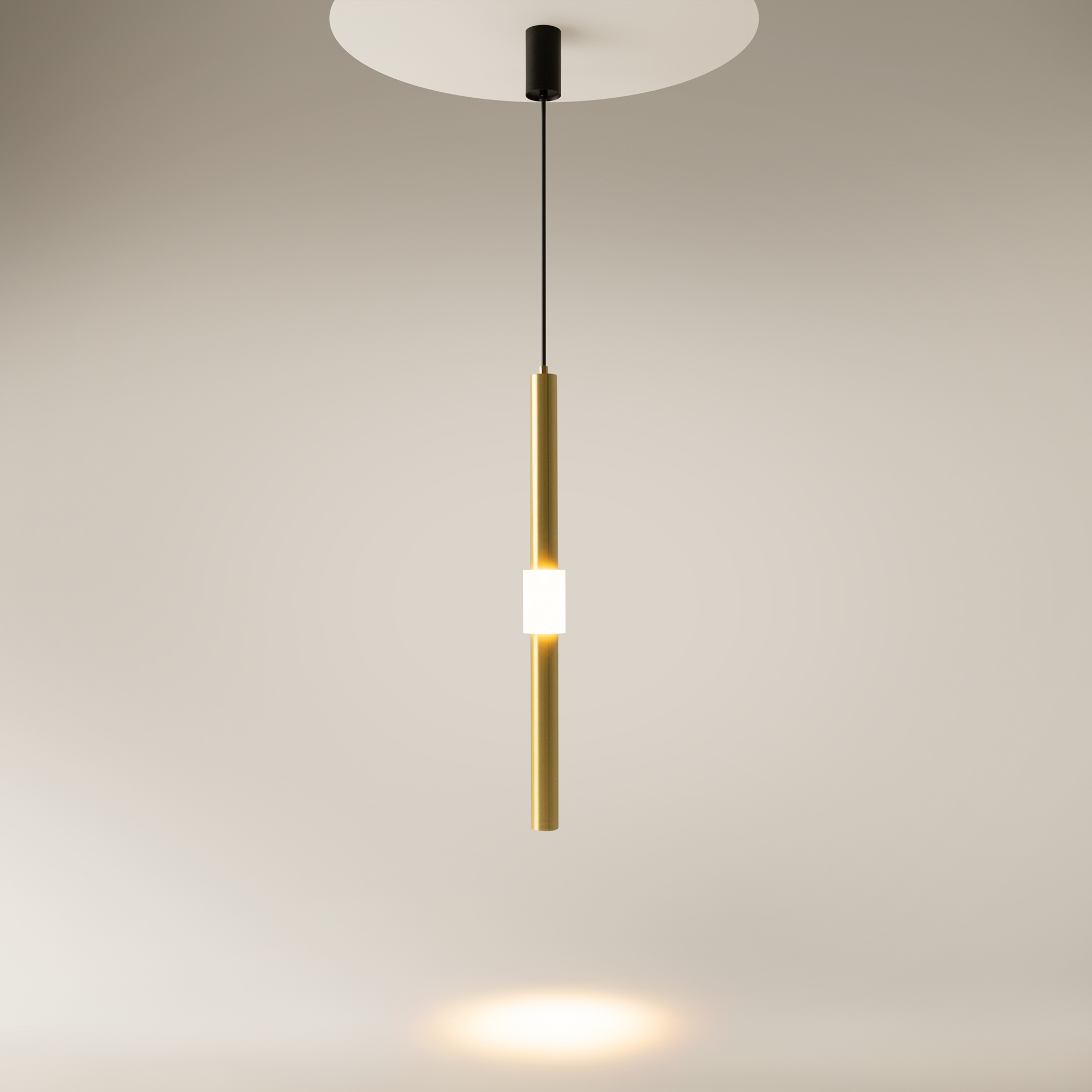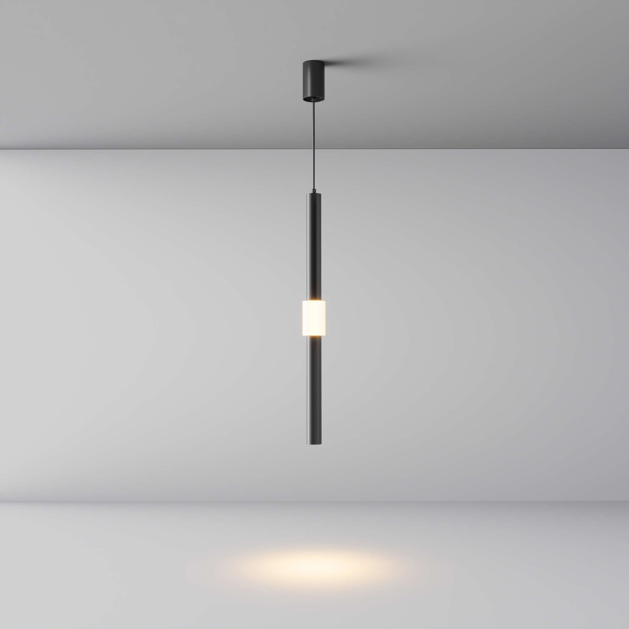 Светильник имеет круглую форму с диаметром 35 мм и общую высоту 580 мм, что делает его идеальным для размещения над обеденным столом, барной стойкой или в качестве локального освещения в гостиной или спальне. Модель комплектуется круглой чашей крепления с размерами: диаметр 52 мм, высота и длина – 93 мм, что обеспечивает надежную фиксацию к потолку.