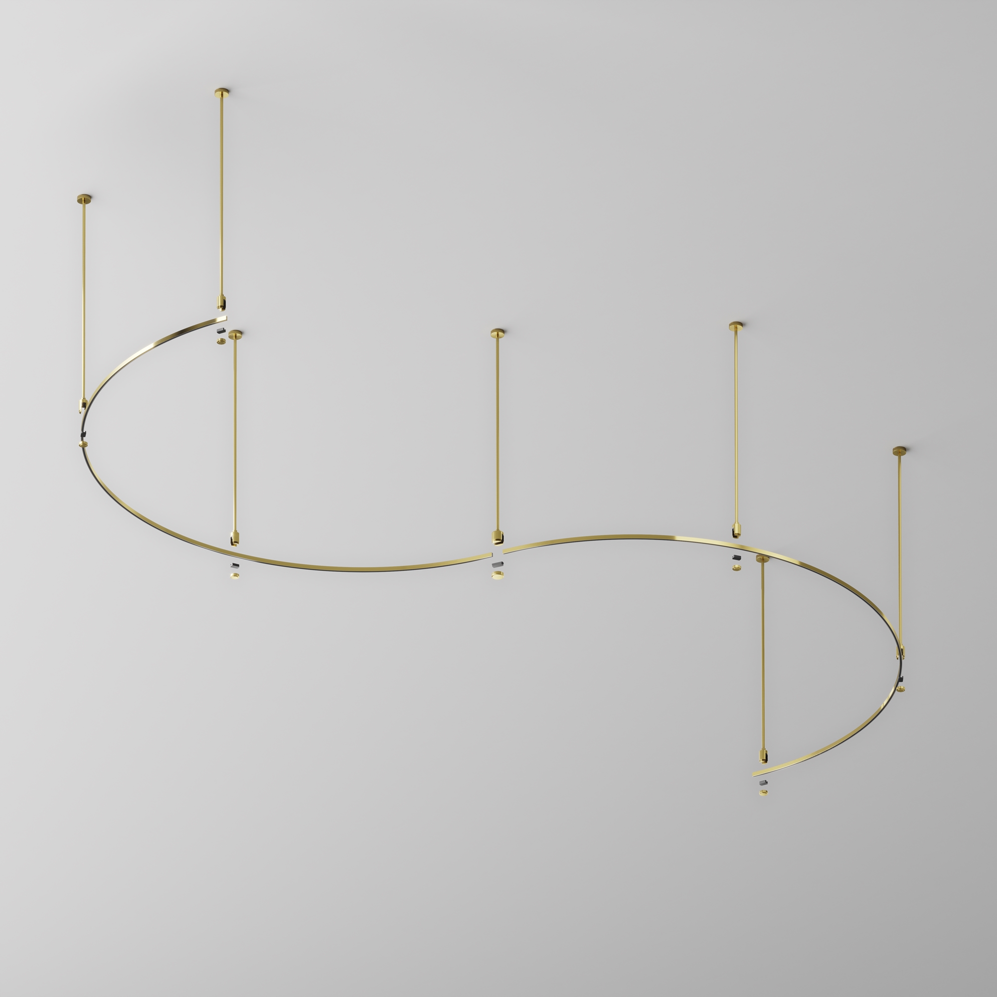 Шинопровод выполнен в латунном цвете, что придает ему элегантный, премиальный вид. Основной материал конструкции — алюминий, обеспечивающий оптимальное сочетание легкости, прочности и долговечности. Благодаря этому шинопровод не только выполняет свою техническую функцию, но и становится стильным элементом интерьера.