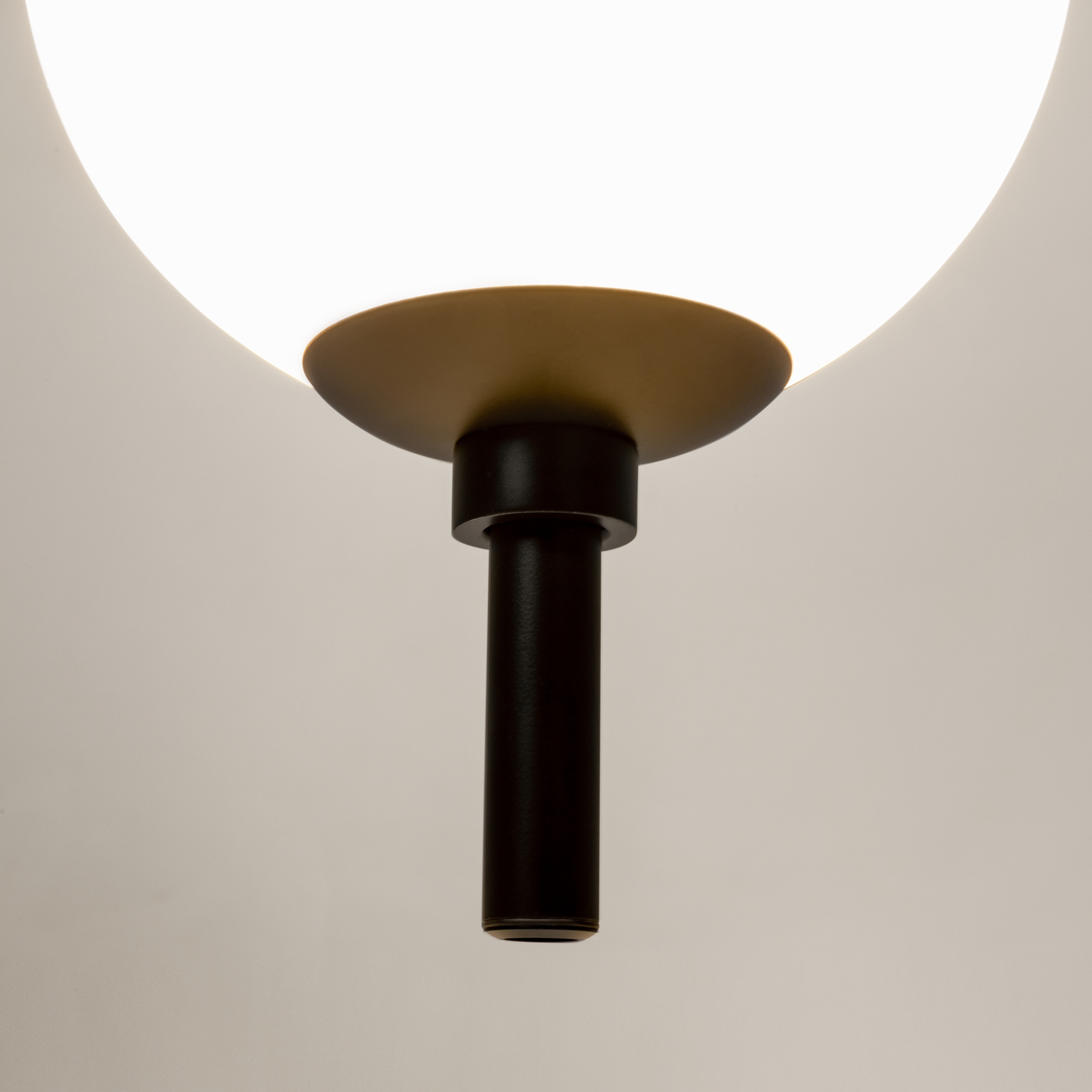 Светильник выполнен в стиле Maytoni Modern – направлении, сочетающем лаконичность форм с продуманной функциональностью. Основу конструкции составляет металлическая арматура черного цвета, что придает изделию благородный и элегантный вид. Центральным элементом дизайна выступают сферические плафоны из матового белого стекла, которые создают мягкое, равномерное рассеивание света.