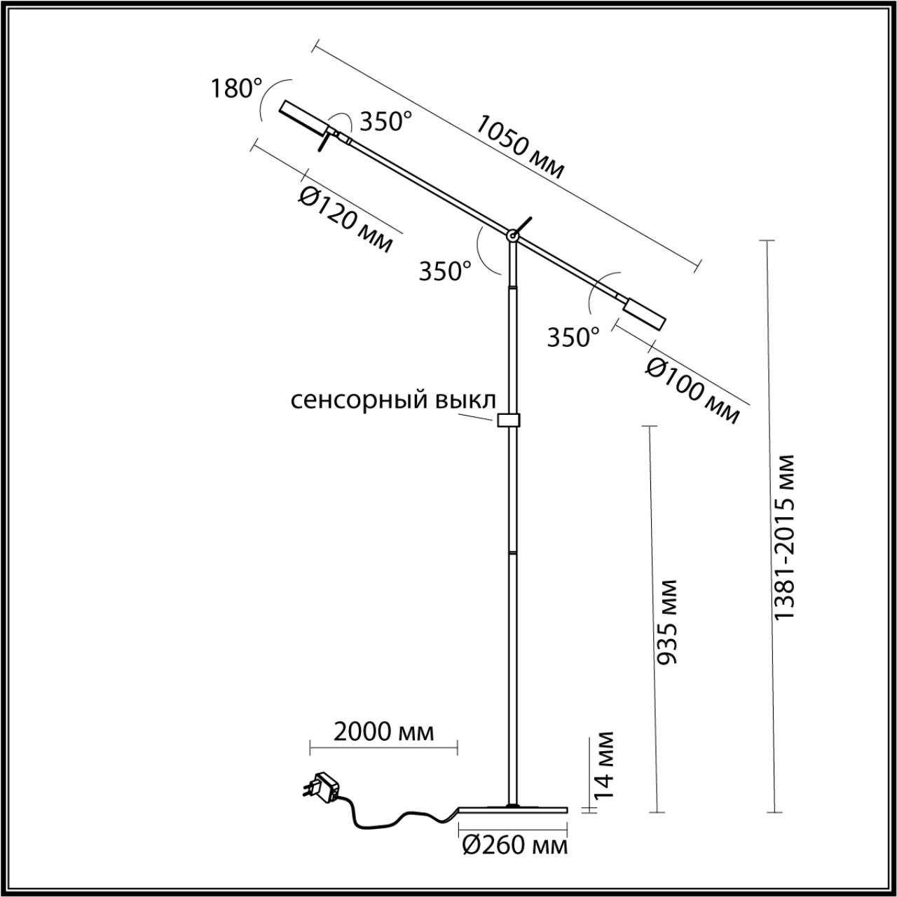 4321/20FL MIDCENT ODL23 169 черный/металл Напольный светильник с диммером на корпусе IP20 LED 20W 791Лм 3000K DENZEL Odeon Light 4321/20FL
