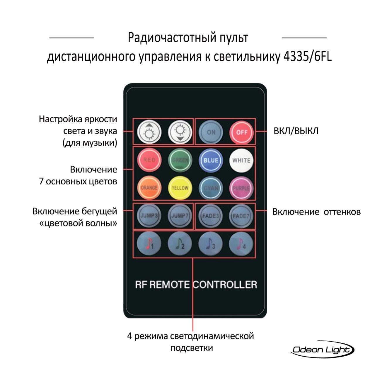 4335/6FL HIGHTECH ODL22 165 чёрный Напольный светильник c ПДУ IP20 LED 6W RGBW 1125Лм 3000K FILLINI (микрофон и динамик в комплекте) Odeon Light 4335/6FL
