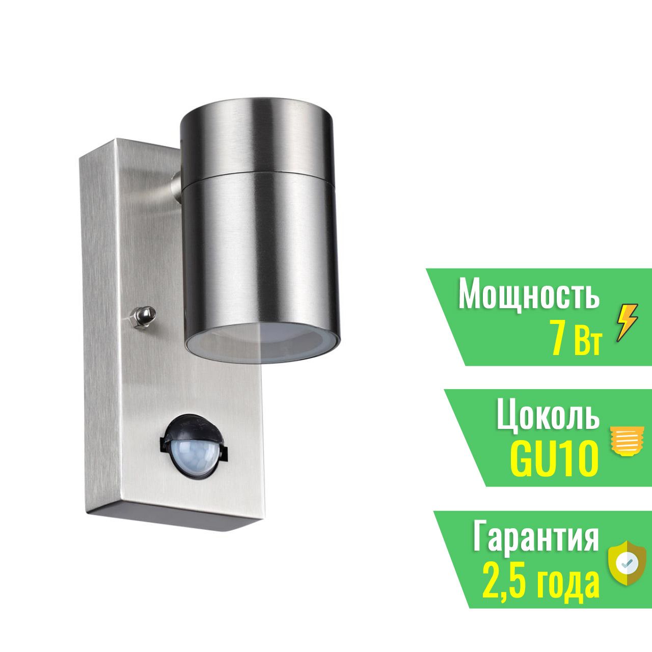 4388/1W HIGHTECH ODL23 633 нерж. сталь/металл/пвх стойкий к УФ излючениюНастенный светильник с датчиком движения IP44 LED GU10 7W MOTTO Odeon Light 4388/1W