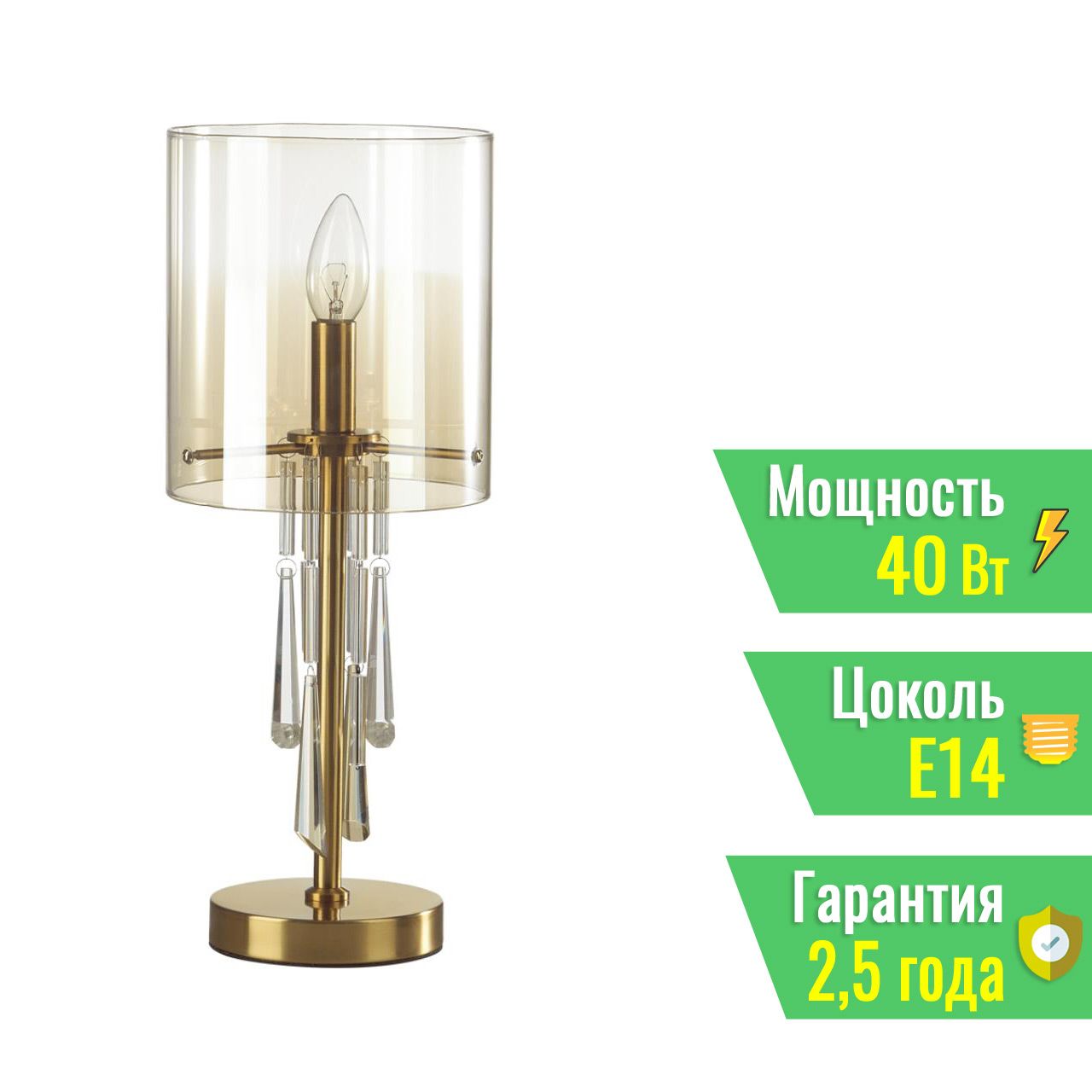 - Декоративные элементы: хрустальные подвески прозрачного и янтарного оттенков