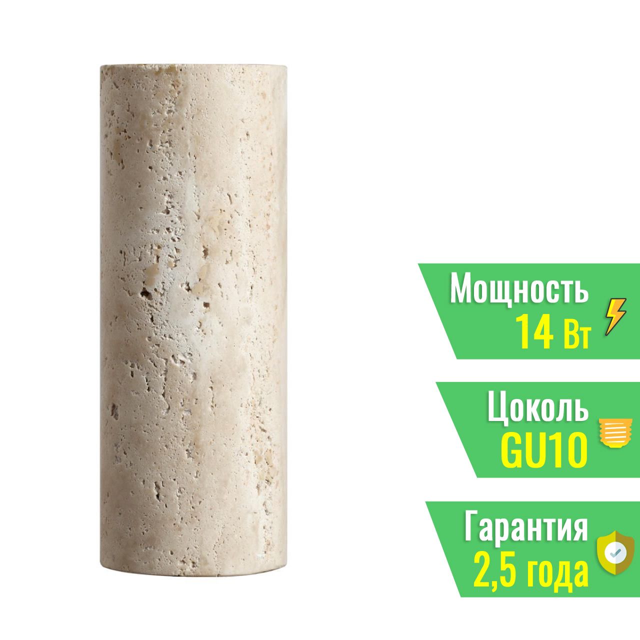 Светильник TRAVERTINO оснащен двумя лампами с цоколем GU10 LED общей мощностью 14 Вт (7 Вт каждая). Это современное и энергоэффективное решение, которое обеспечивает яркий направленный свет при минимальном потреблении электроэнергии. Площадь эффективного освещения составляет приблизительно 2 кв.м.