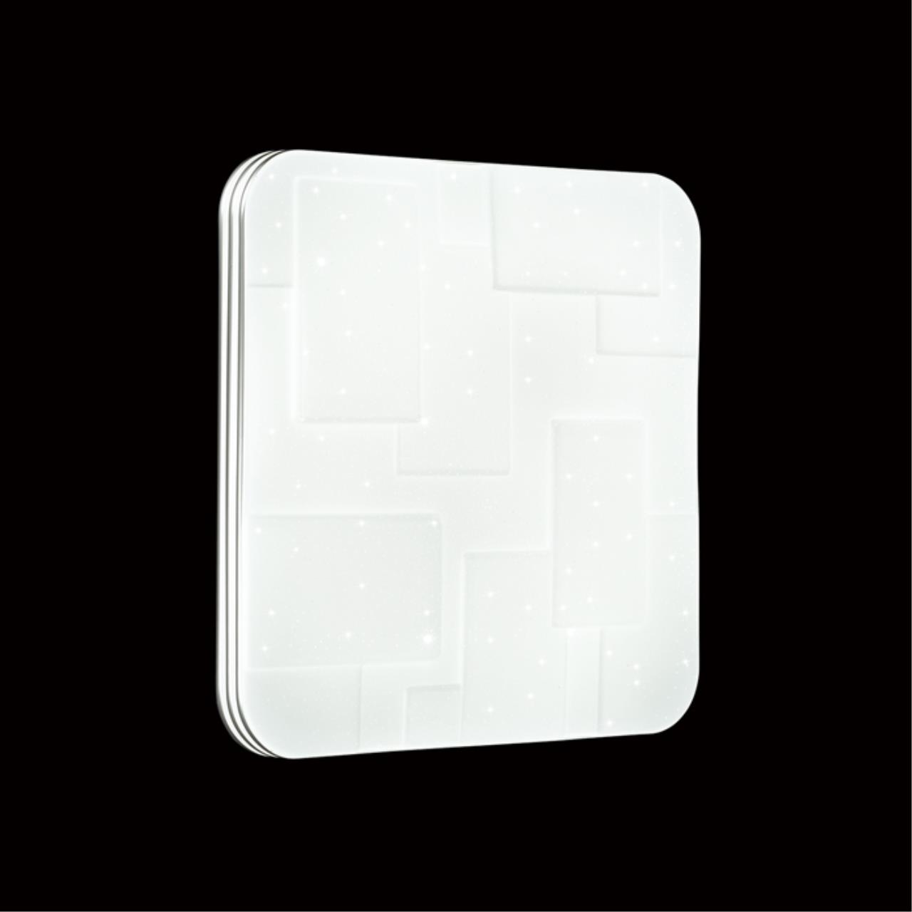 Светильник 2085/EL линии NORES состоит из металлического основания (базы) и пластикового рассеивателя. Материал рассеивателя - высококачественный акрил белого матового цвета, обеспечивающий светильнику равномерное рассеивание и хорошее светопропускание. Форма плафона: квадратная, в виде рельефного орнамента с геометрическим рисунком, декорирован прозрачными точками, придающими включенному светильнику красивый эффект "звездного мерцания" и переливания. Степень защиты IP43 позволяет использовать светильник в определенных зонах влажных помещений. В комплект входит заменяемый LED модуль с линзами, мощностью 72Вт, которая соответствует лампе накаливания 520Вт. А также пульт ДУ, с помощью которого осуществляется плавное изменение цветовой температуры 3000-6000К, изменение яркости, переход в режим переключения теплого/белого/холодного/ночного света. Светильник имеет функцию "память". Заказать товар SN2085/EL вы можете в Москве по телефону 8 (495) 212-26-01.