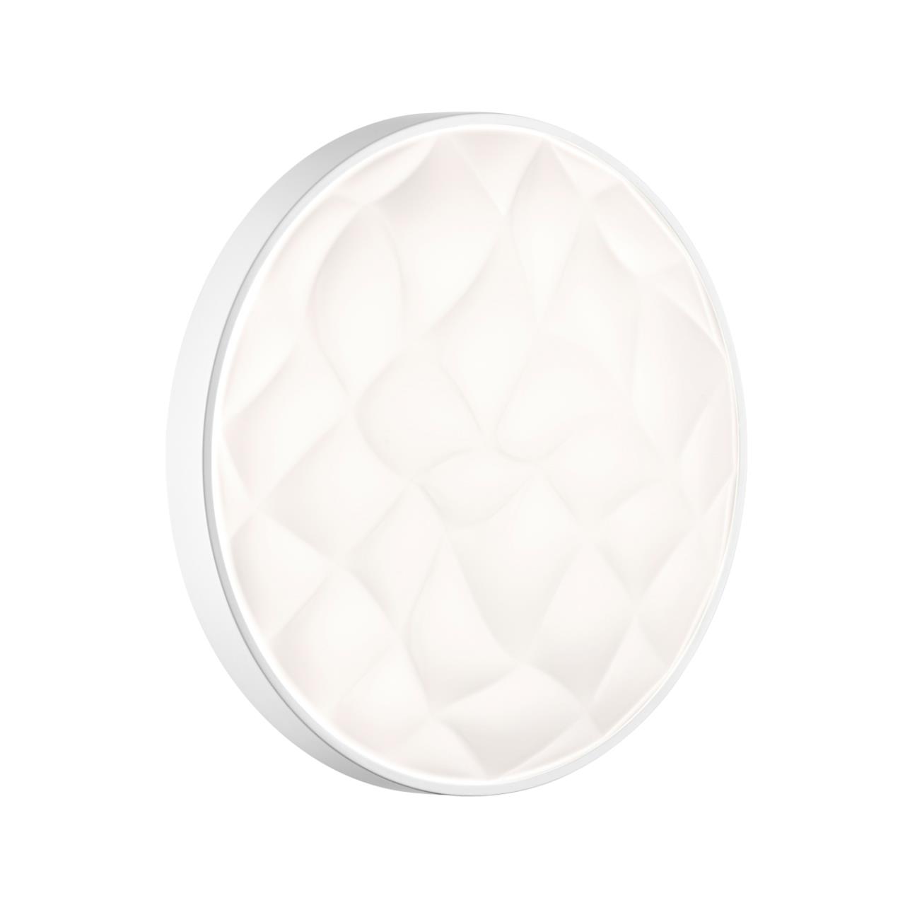 Особенность модели — рассеиватель из высококачественного пластика PMMA 2.0 белого цвета с матовой поверхностью, который декорирован изящной рельефной структурой и ободом из белого пластика. Такое исполнение обеспечивает равномерное рассеивание света и отличное светопропускание, создавая мягкое, комфортное освещение без резких теней.
