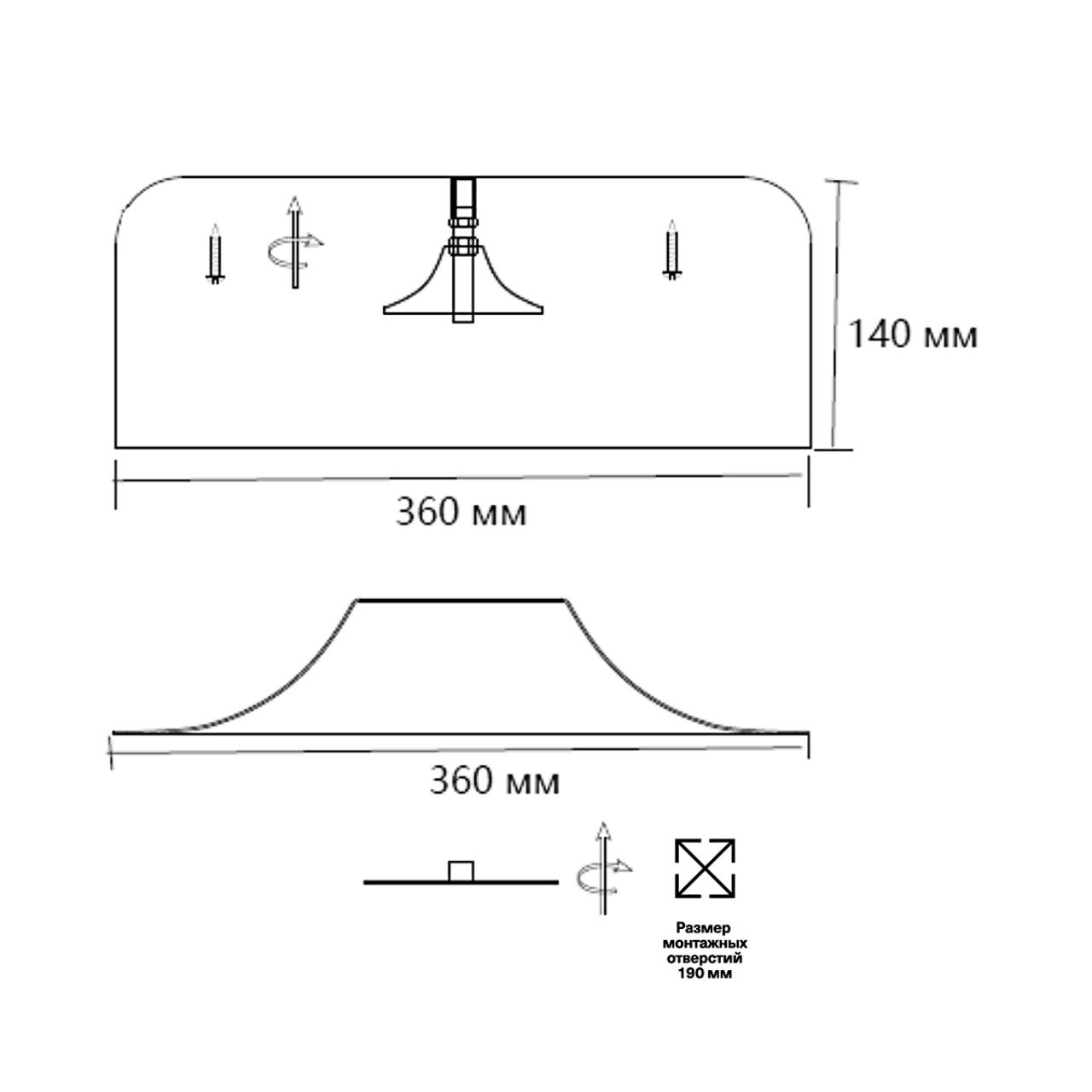 - Размеры светильника: диаметр 360 мм, высота 140 мм