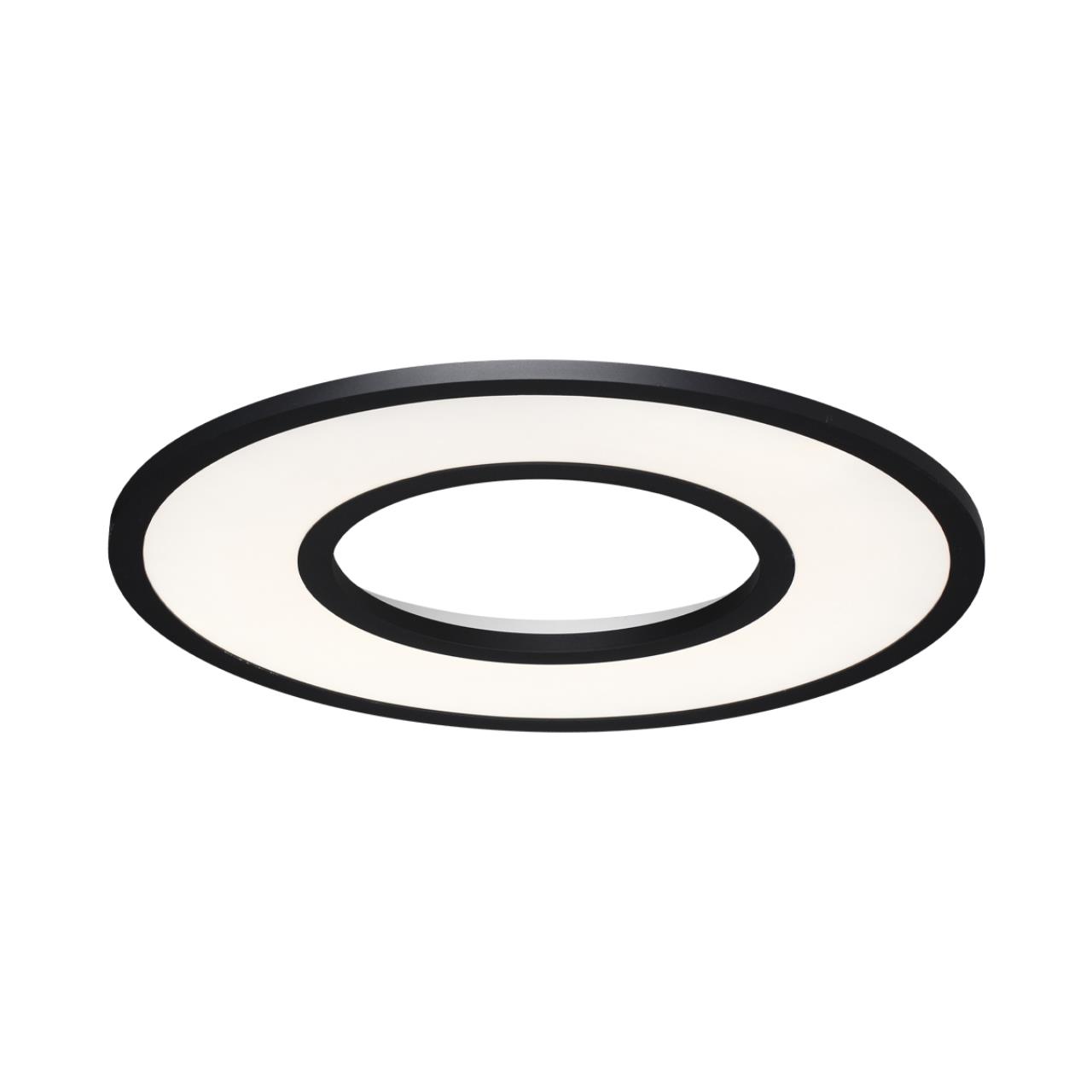 Светильник выполнен в минималистичном дизайне с элементами хай-тек стиля, что делает его отличным выбором для современных интерьеров. Изящная кольцевая форма с диаметром 485 мм и высотой всего 40 мм позволяет органично вписать светильник в любое пространство. Сочетание черной металлической арматуры и белого матового акрилового рассеивателя создает эффектный контраст, подчеркивающий современный характер модели.