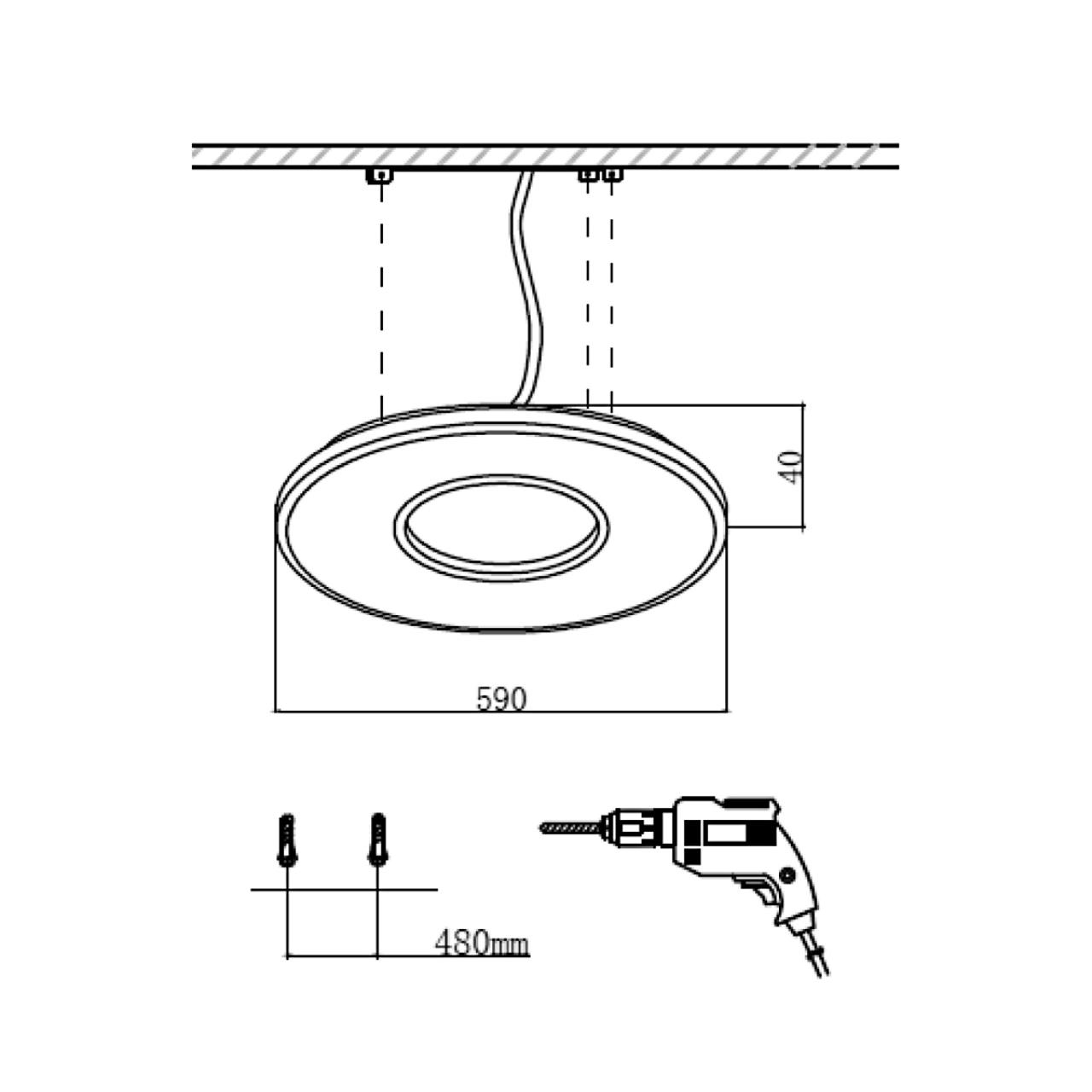 - Размеры светильника: диаметр 590 мм, высота 40 мм