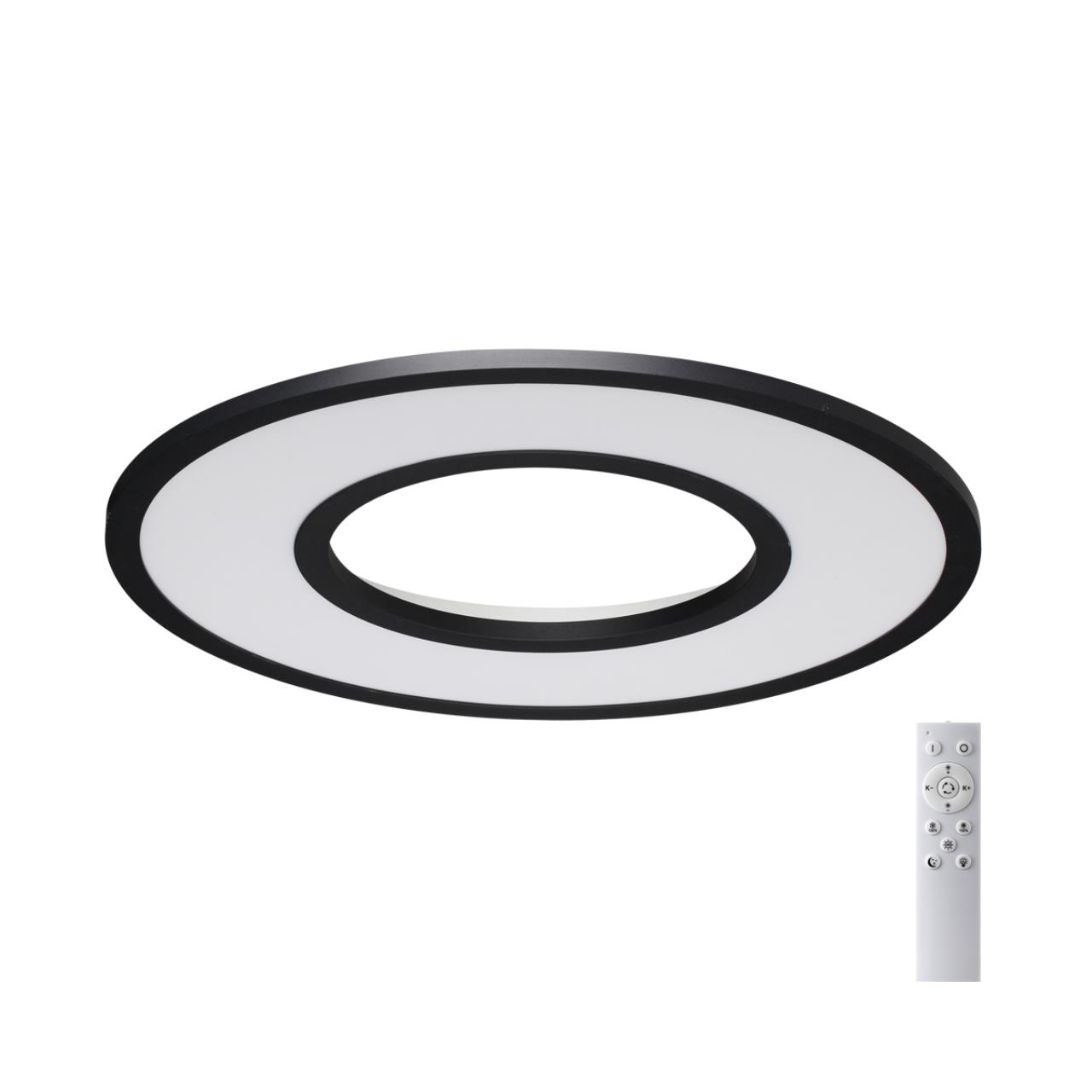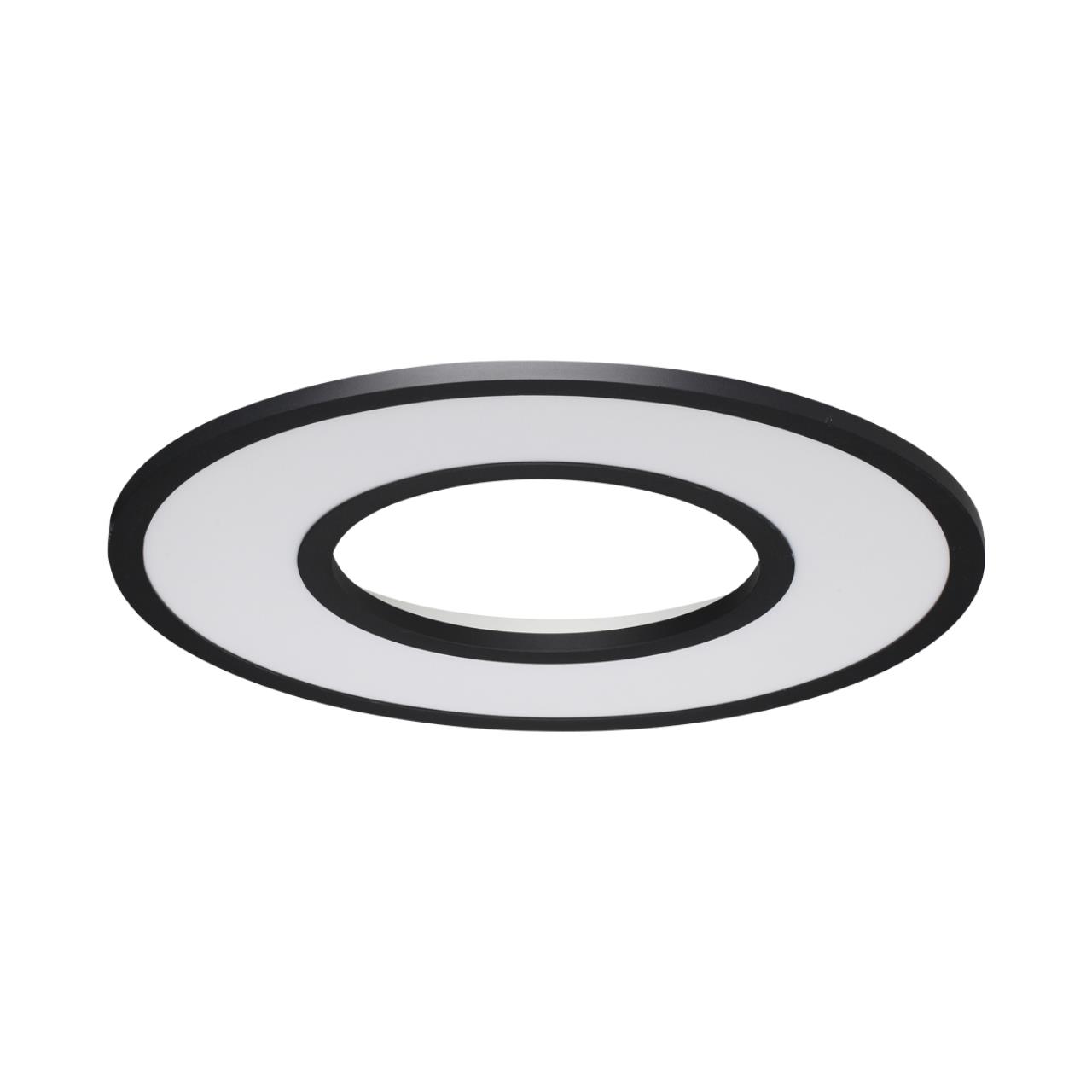 Светильник выполнен в форме изящного кольца диаметром 590 мм при высоте всего 40 мм, что делает его визуально легким и не перегружающим пространство. Корпус изготовлен из высококачественного металла, окрашенного в глубокий черный цвет, а рассеиватель представляет собой матовый акриловый плафон белого цвета с превосходными светопропускающими характеристиками.